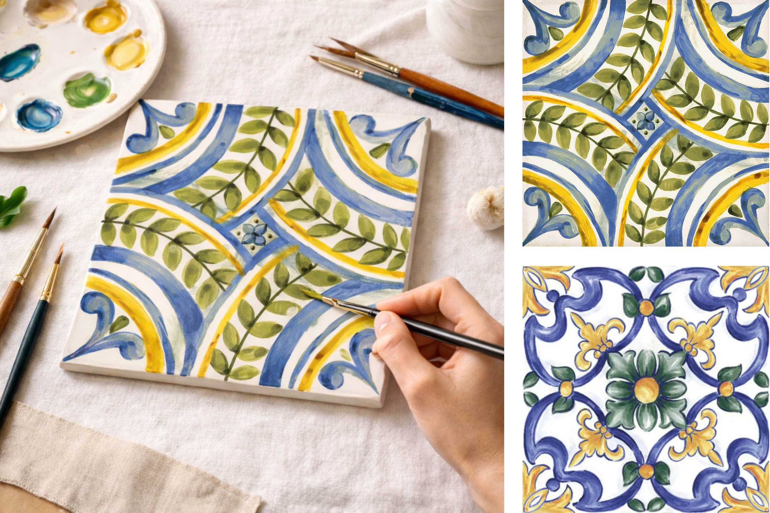 Open to all levels and designed as a relaxed, hands-on experience. You will be guided through the process of composing and painting your own tile, with room to experiment and make the design your own. After the session, the tiles will be glazed and fired, transforming your work into a lasting ceramic piece that reflects the aesthetics of Mediterranean ornament.